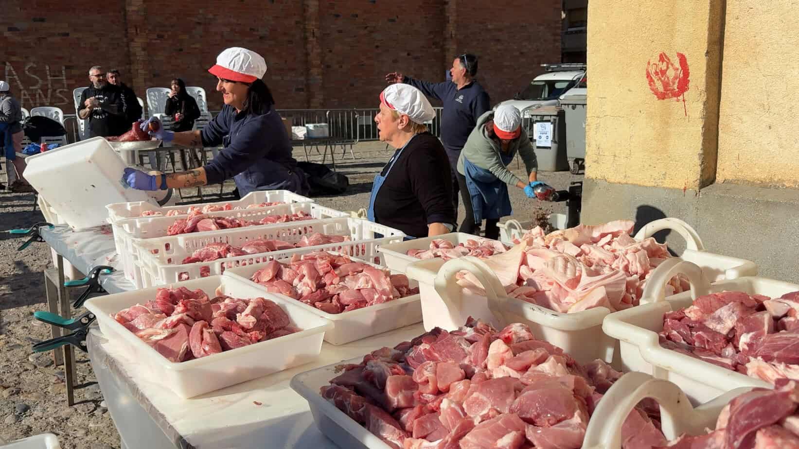 Una dimarts de Carnestoltes més, Artesa de Segre celebra la matança del porc. Una de les festes amb més tradició del municipi. Des de primera hora del matí, a l’espai de les sitges del poble, una trentena de voluntaris han començat a fer les elaboracions de llonganissa i botifarra negra. En total, prop de 800 kg de carn. Molts més que l’any 79, el primer cop que es va fer la matança al municipi, però amb la mateixa essència.
