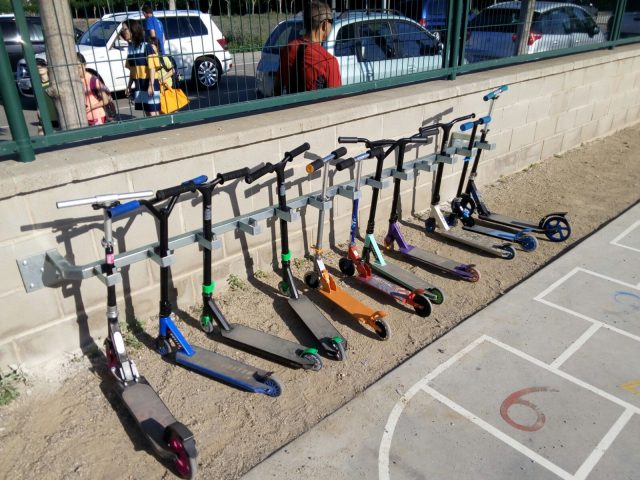 Una de les primeres mesures va ser habilitar un aparcament per aquests vehicles. Aquesta actuació va formar part del projecte “Ideem el nostre pati” realitzat amb tota la comunitat educativa i que va transformar aquest espai i els seus usos. Enguany, fent un pas més, s’ha optat per organitzar una xerrada que informi de les normes d’ús dels patinets.