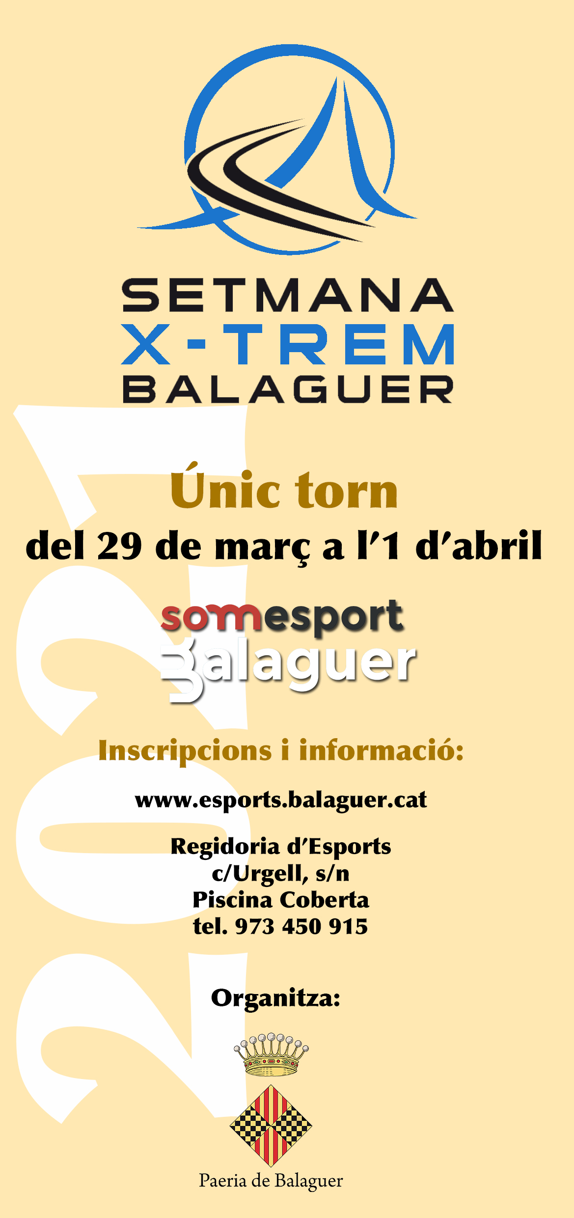 Del 29 de març i fins a l’1 d’abril, coincidint amb les vacances del període de Setmana Santa, l’àrea d’esports de la Paeria de Balaguer continuarà amb la setmana X-trem; la 15a edició no presenta canvis respecte a la darrera edició pel que fa als continguts.